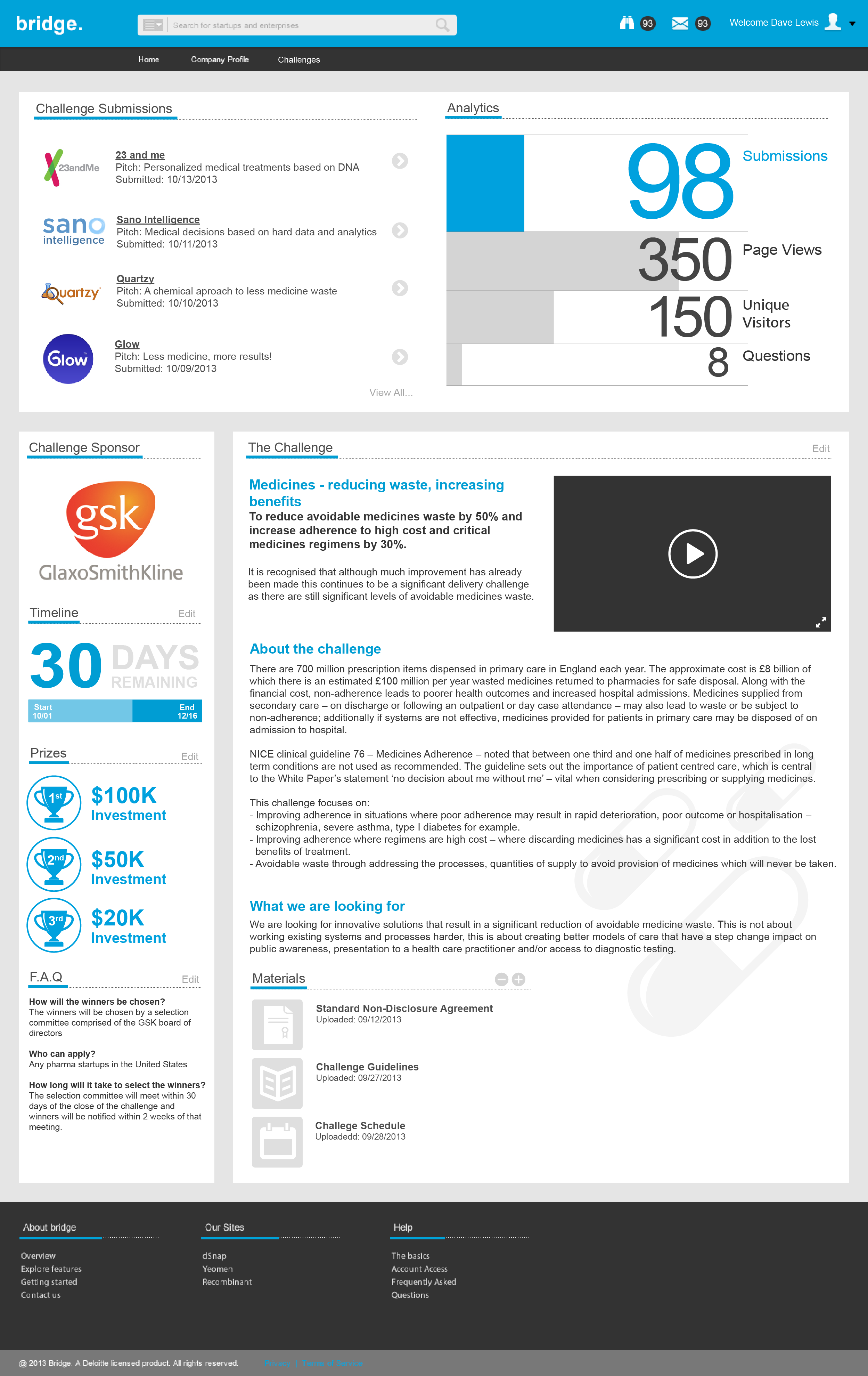 Deloitte Bridge - An online platform to connect major corporations with the startup ecosystem (Fall 2013)